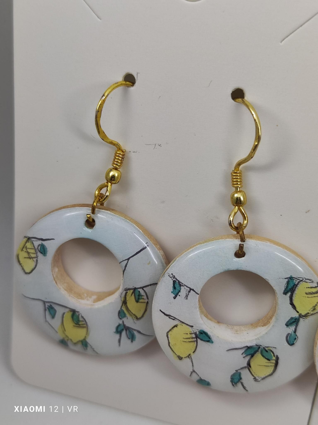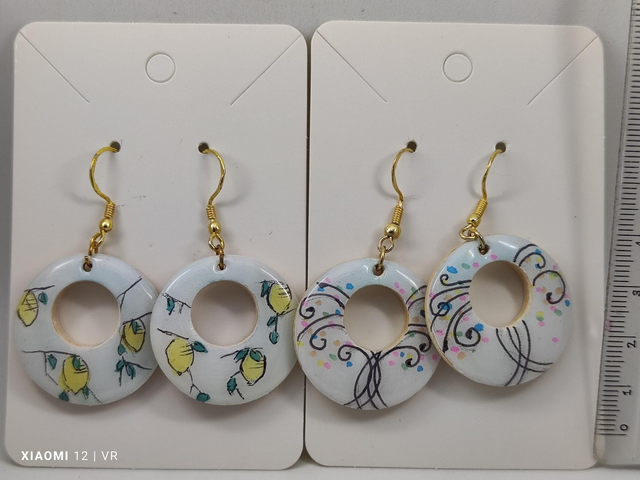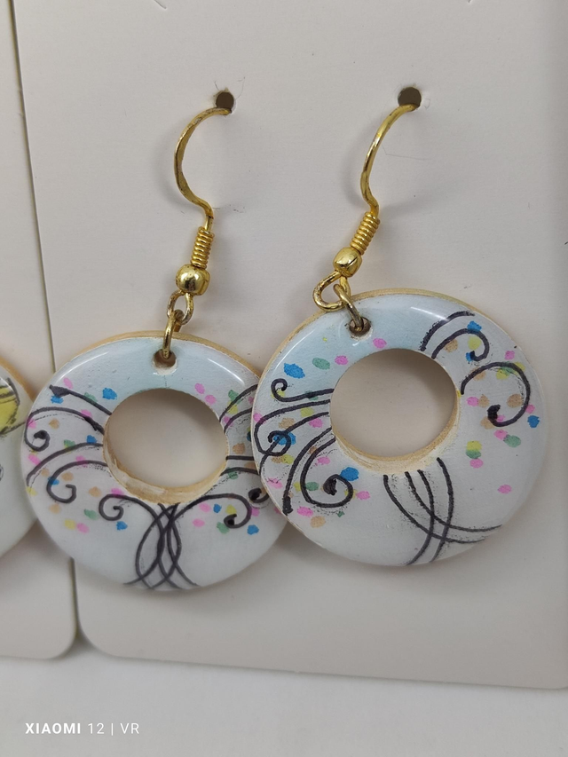 Orecchini in legno, varie misure, dipinti a mano con finitura in resina